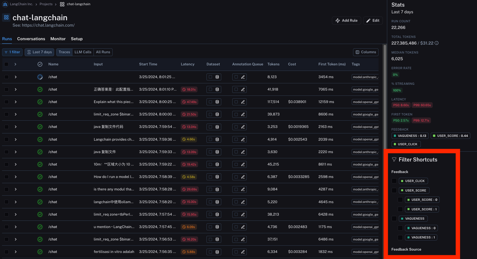 This page contains a series of guides for how to filter runs in the application. For a guide on how to accomplish something similar programmatically, please see this guide. Being able to accurately filter runs is important for both manual inspection and setting up automations.